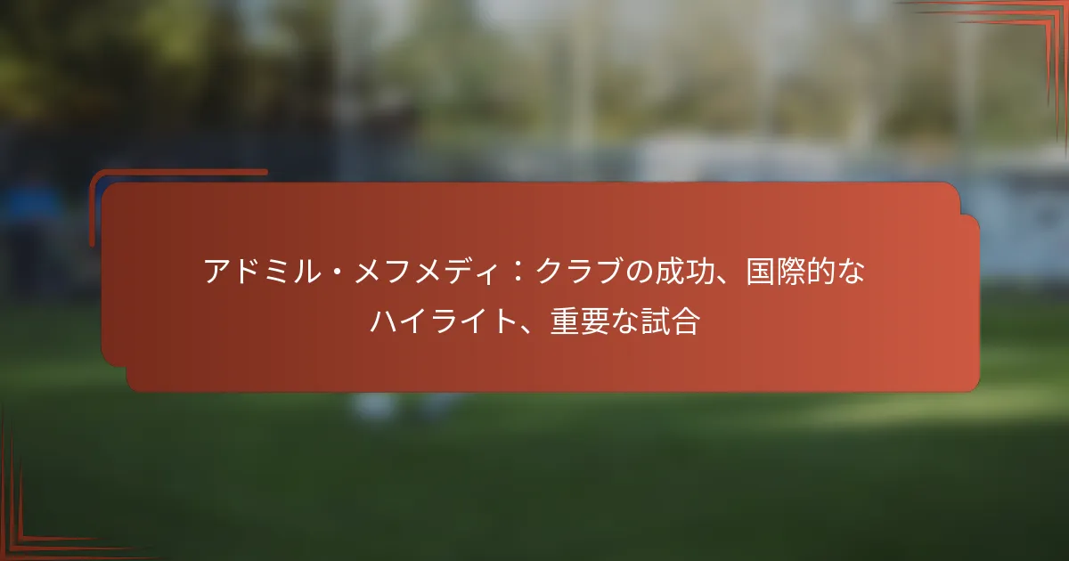 アドミール・メフメディのキャリアを定義する重要な試合はどれですか?