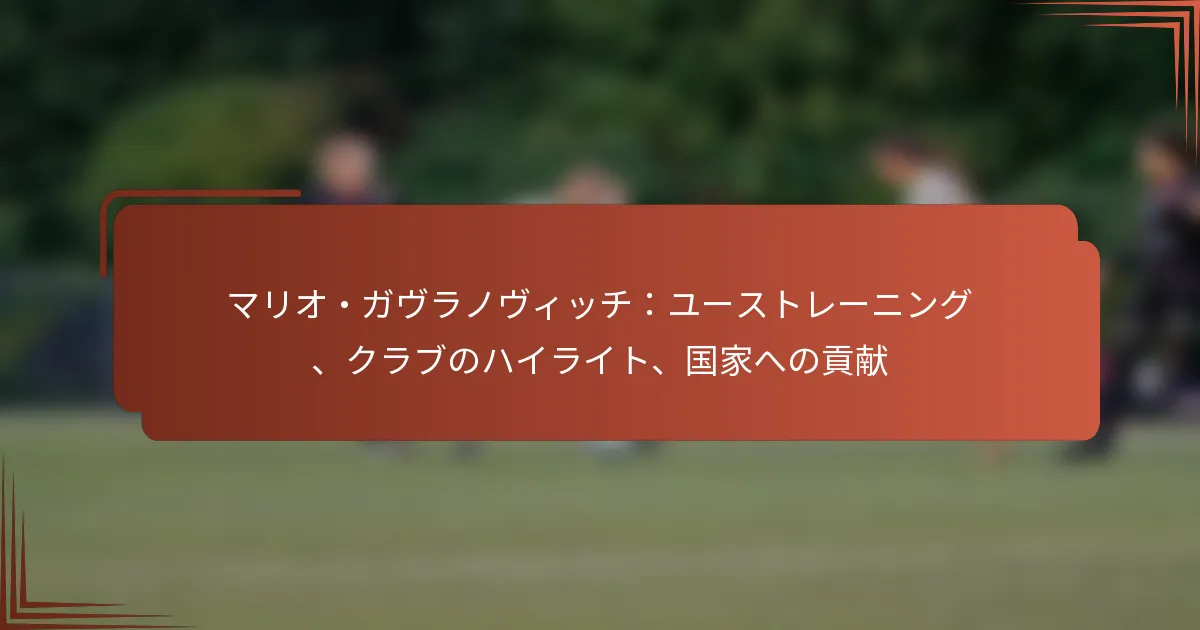 マリオ・ガヴラノヴィッチのユーストレーニングの背景は、彼のサッカーのスキルと理解を形成したさまざまなクラブやアカデミーへの早期の関与によって特徴づけられています。彼の成長は、プロキャリアの基盤を築くための著名なコーチや競争経験の影響を受けました。