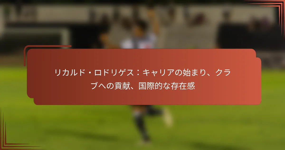 リカルド・ロドリゲスはスイスでサッカーの旅を始め、彼の初期の経験が彼のスキルとゲームへの情熱を形作りました。ユースクラブでの成長とプロデビューは、サッカーでの成功したキャリアの基盤を築きました。