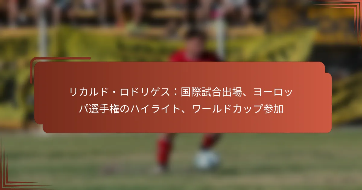 リカルド・ロドリゲスはUEFA欧州選手権での出場中に重要な貢献をし、ディフェンダーおよびプレイメーカーとしてのスキルを披露しています。彼のパフォーマンスには、重要なアシスト、堅実な守備プレー、ファンやアナリストに響く記憶に残る瞬間が含まれています。