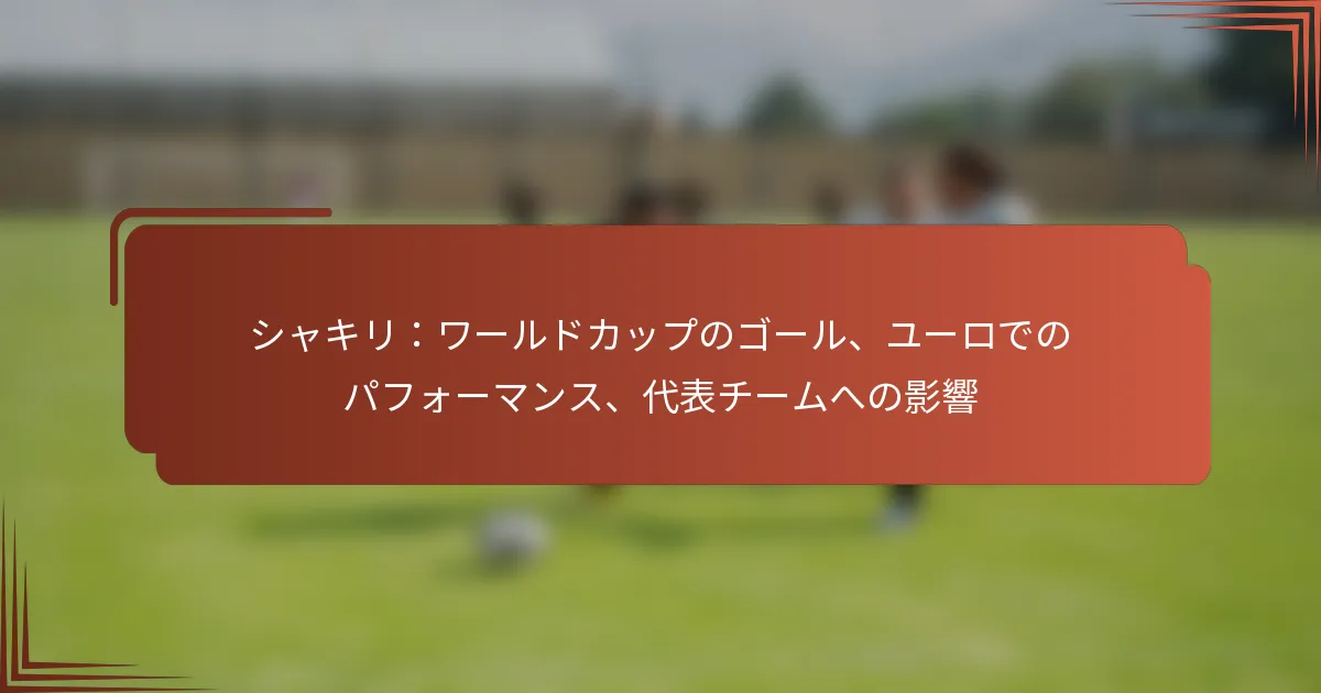 UEFA欧州選手権におけるShaqiriのパフォーマンスは、トーナメントにおけるスイスの全体的な成功に大きな影響を与えています。彼の得点とアシストの能力は、重要な試合で流れを変えることが多く、チームが予想以上に進出するのを助けています。
